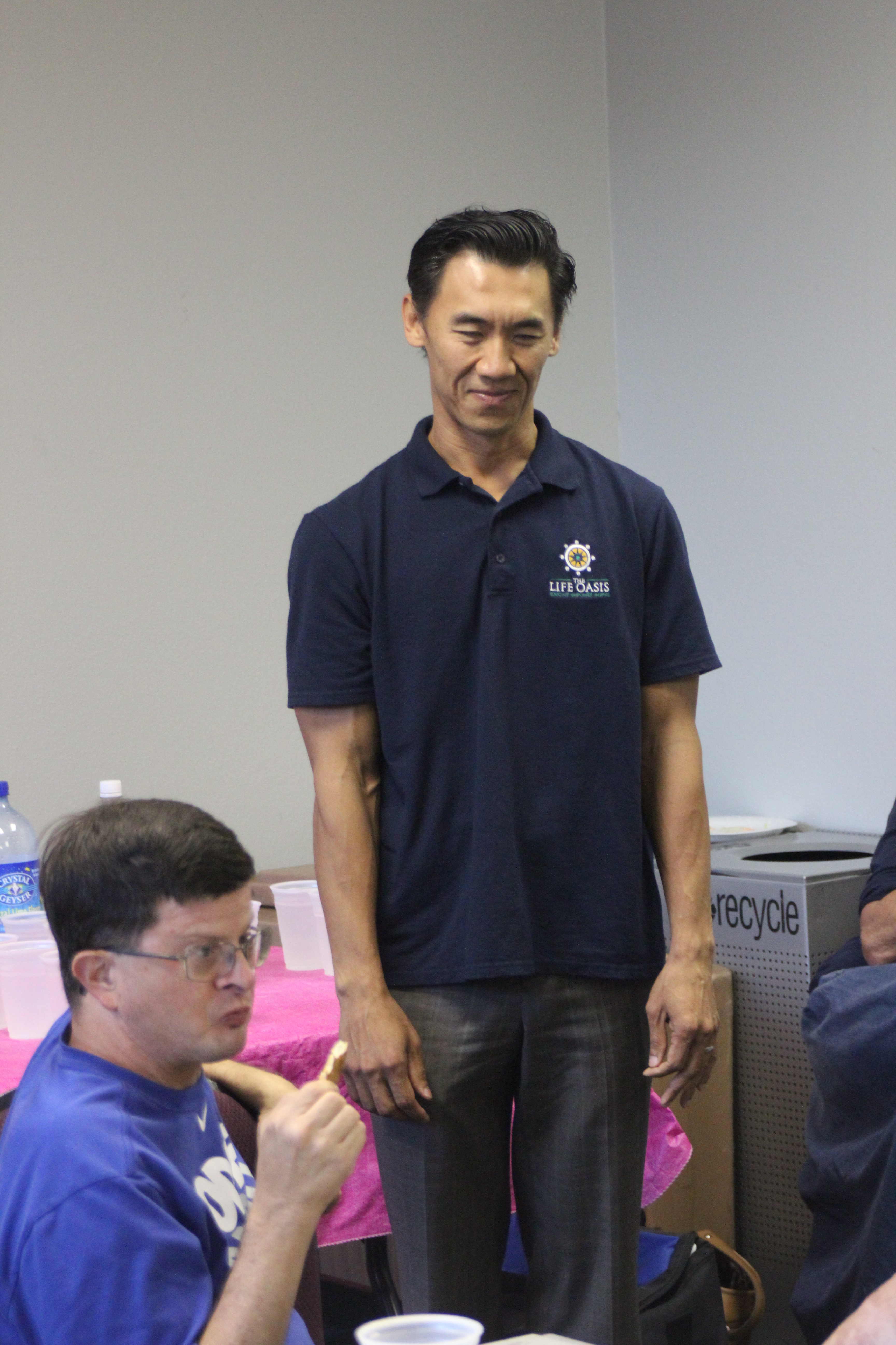 Kathy Young from People First, receiving a volunteer award from the South Bay Environmental Services Center.